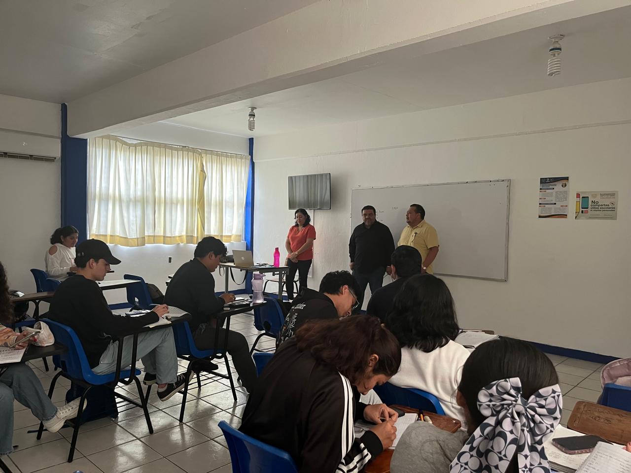 El Dr. Ocampo Muñoa fue recibido por el Dr. Marco Antonio Calvo González, Director de la Escuela, quien le brindó una fraternal bienvenida, acompañado por la Mtra. María Cristina González Castellanos, Secretaria Académica, y la Lic. Denisse Díaz Gómez, Secretaria Administrativa.