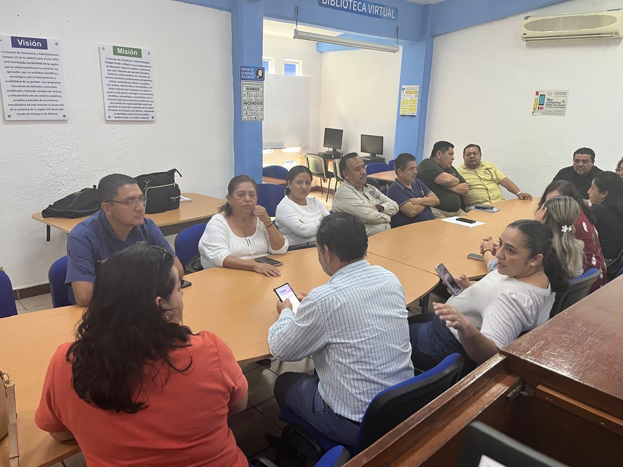 La jornada concluyó con una reunión de trabajo realizada en la Biblioteca Universitaria del Campus, en la que participaron integrantes de la planta docente y administrativa. En este espacio se abordaron temas relacionados con la mejora continua de los procesos académicos, reafirmando el compromiso institucional de la UNACH con la calidad educativa y el fortalecimiento de sus Unidades Académicas.