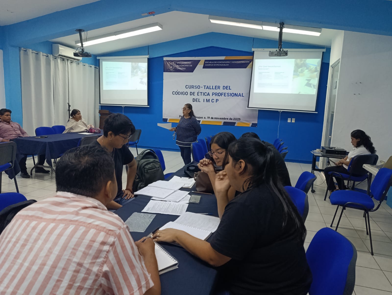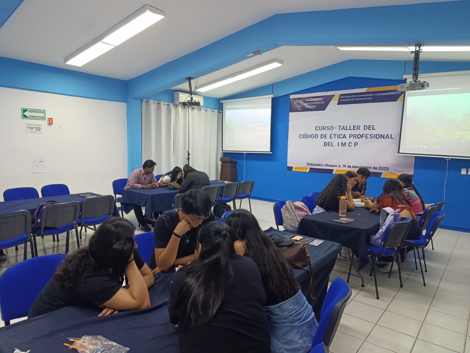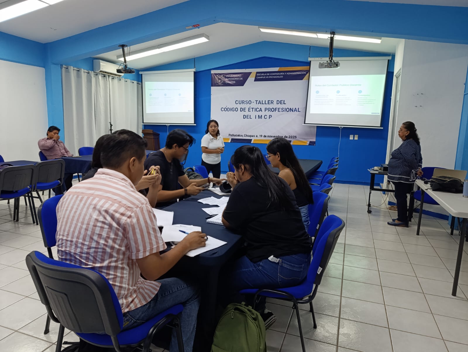 Pichucalco, Chiapas; 19 de noviembre de 2025. — La Escuela de Contaduría y Administración, Campus VII de la Benemérita Universidad Autónoma de Chiapas, realizó la quinta sesión del Curso-Taller del Código de Ética Profesional del IMCP, fortaleciendo la formación ética y profesional de sus estudiantes.