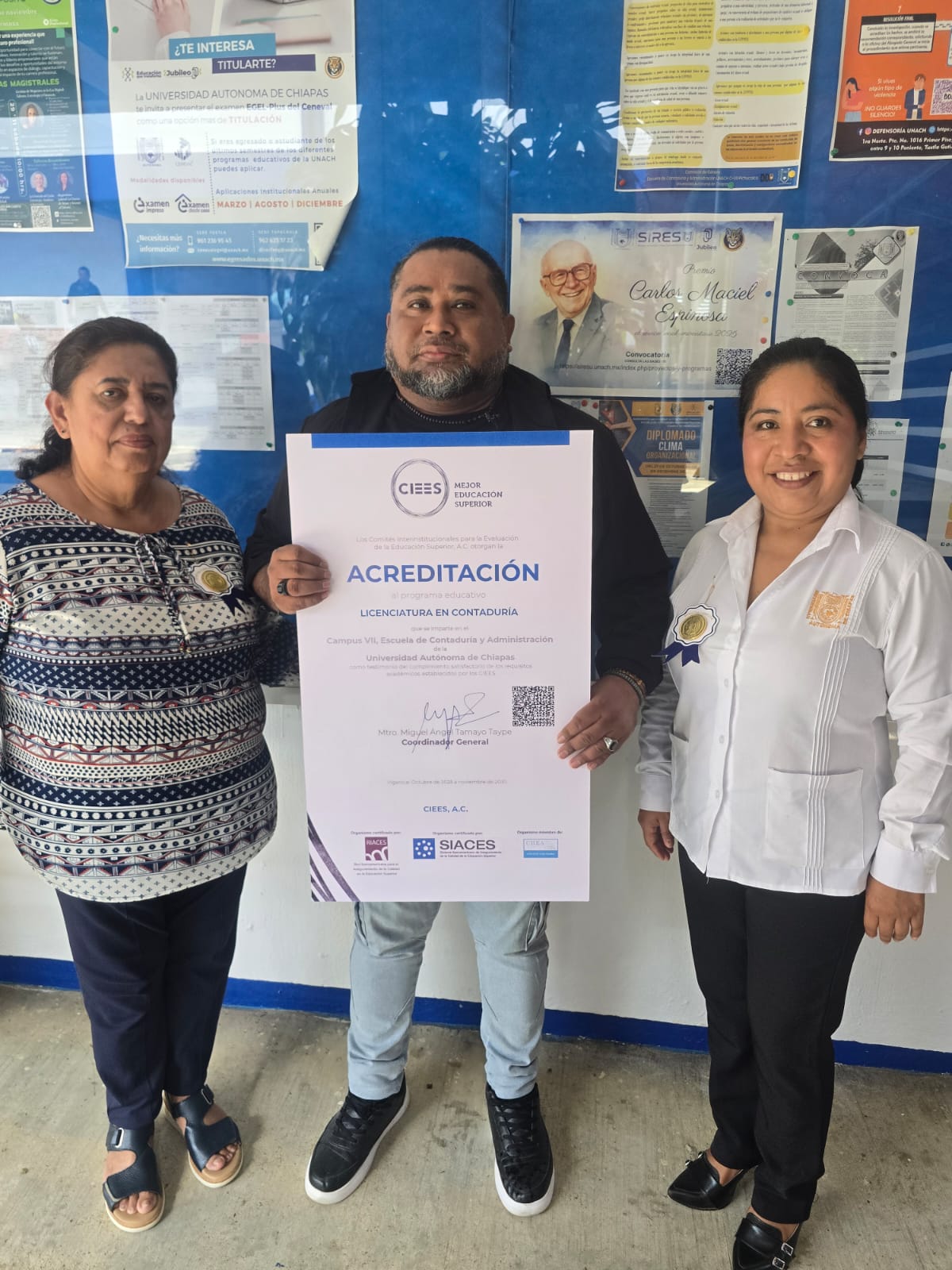 Asimismo, extendemos un reconocimiento especial a todo el equipo del Campus VII Pichucalco. Esta acreditación es el reflejo del trabajo coordinado de docentes, administrativos y directivos, quienes día a día suman esfuerzos para fortalecer la formación de nuestros estudiantes y consolidar una educación de excelencia.