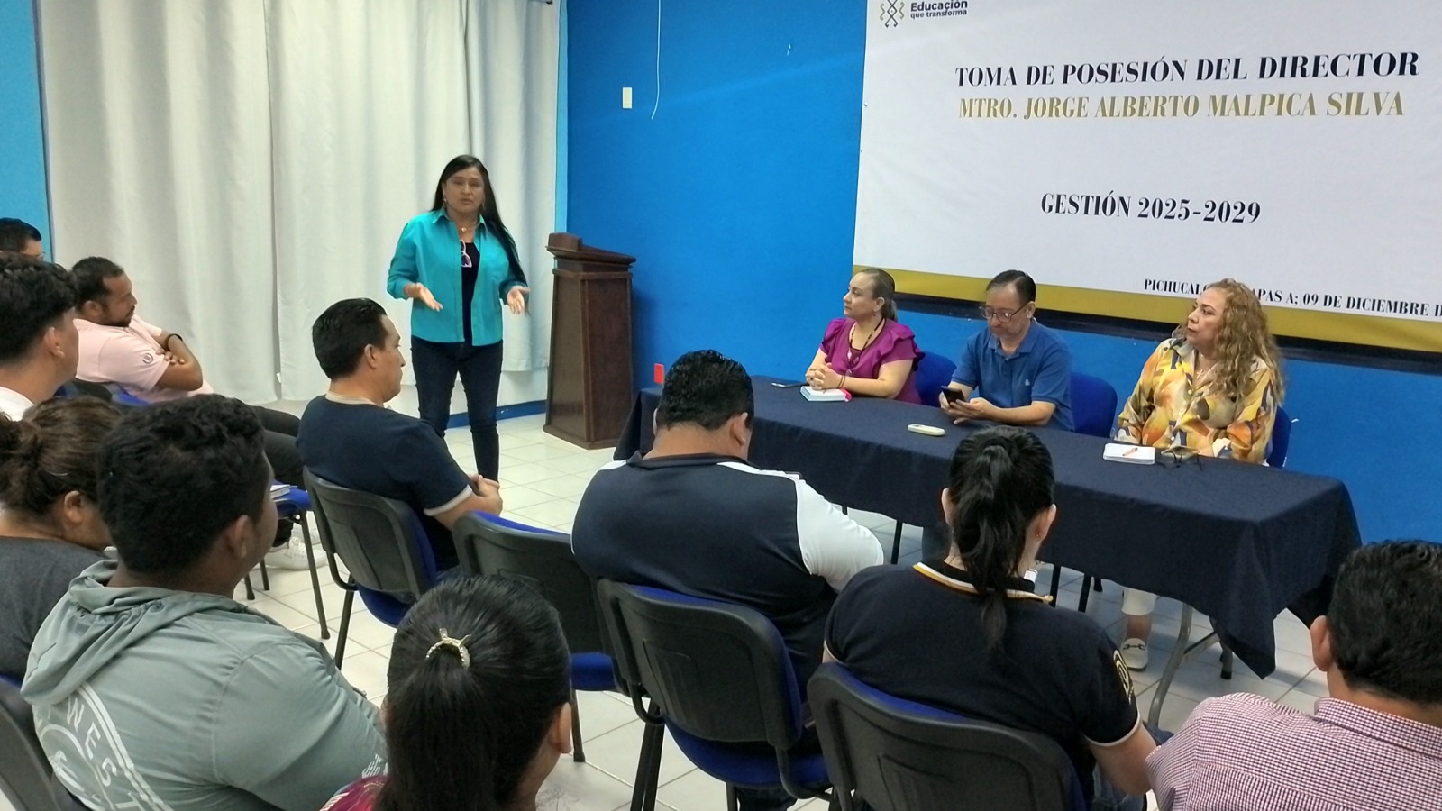 Pichucalco, Chiapas a 8 de enero de 2026. - Con el objetivo de fortalecer la organización académica y dar a conocer la estructura de trabajo para el próximo periodo escolar, se llevó a cabo una reunión de trabajo con Docentes Coordinadores en la Sala de Usos Múltiples de la Escuela de Contaduría y Administración Campus VII Pichucalco.