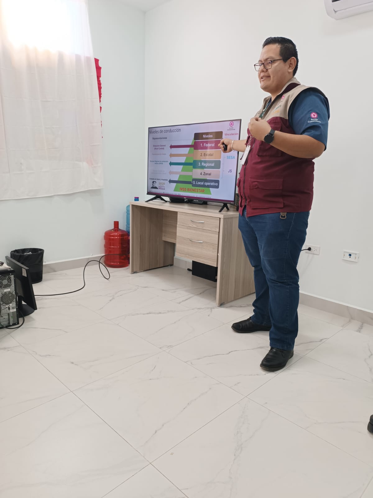 La capacitación fue impartida por el Dr. Raúl Alejandro García Vázquez, Supervisor de Acción Comunitaria, y el L.E. José Luis Briones Mansilla, responsable del área de Educación y Calidad del Hospital General de Pichucalco, quienes abordaron temas relacionados con la organización comunitaria, las funciones del COSABI, el volante de derivación y la vinculación interinstitucional.