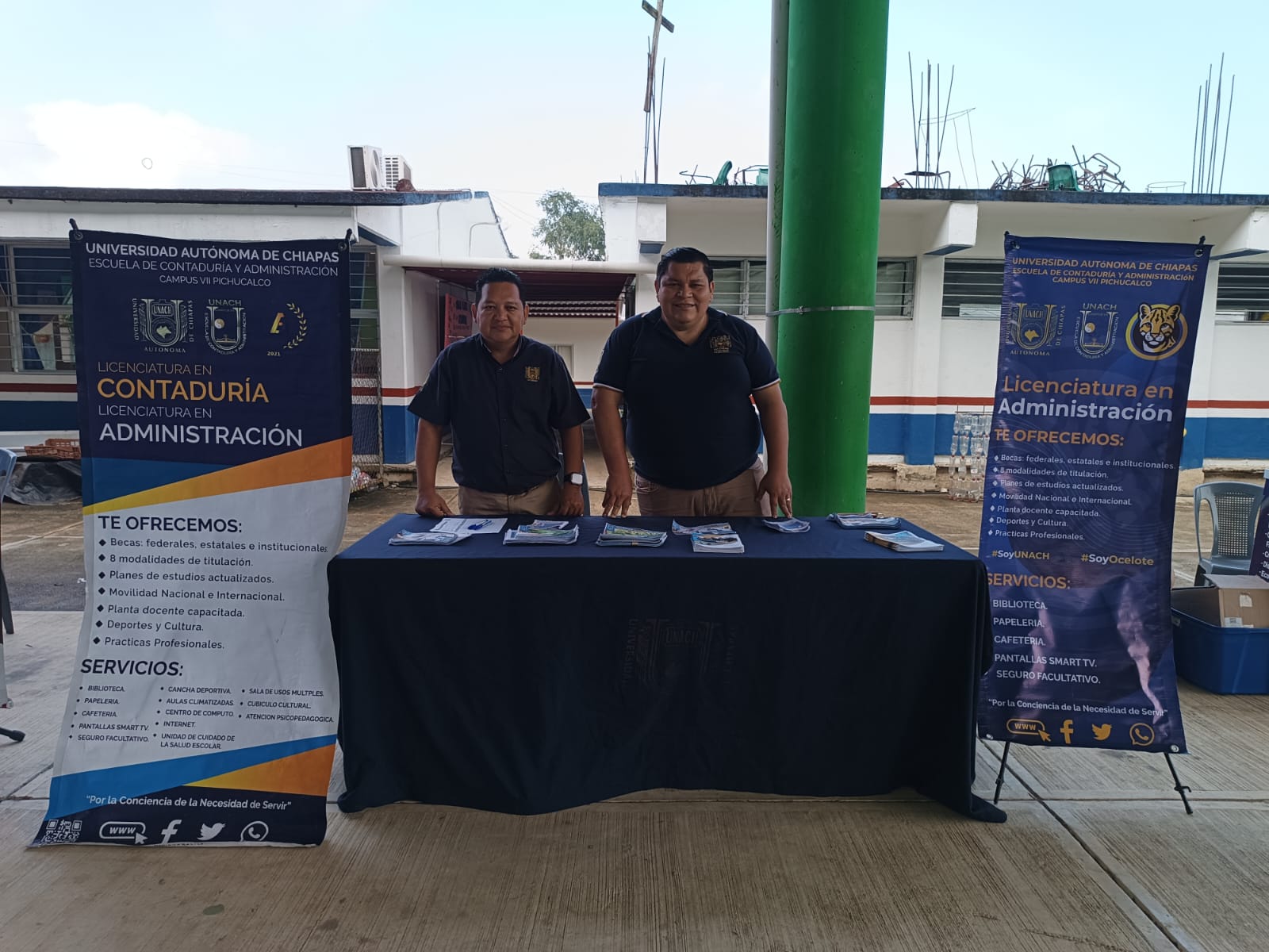 Pichucalco, Chiapas. - La Escuela de Contaduría y Administración Campus VII de la Benemérita Universidad Autónoma de Chiapas, bajo la dirección del Mtro. Jorge Alberto Malpica Silva, designó al Mtro. Carlos Enrique López Zamora, encargado de Promoción y Difusión, así como al Lic. Jesús Manuel Hernández Martínez, para asistir a la Feria Profesiográfica 2026 organizada por el Colegio de Bachilleres de Chiapas Plantel 56 del municipio de Ixtacomitán, Chiapas.