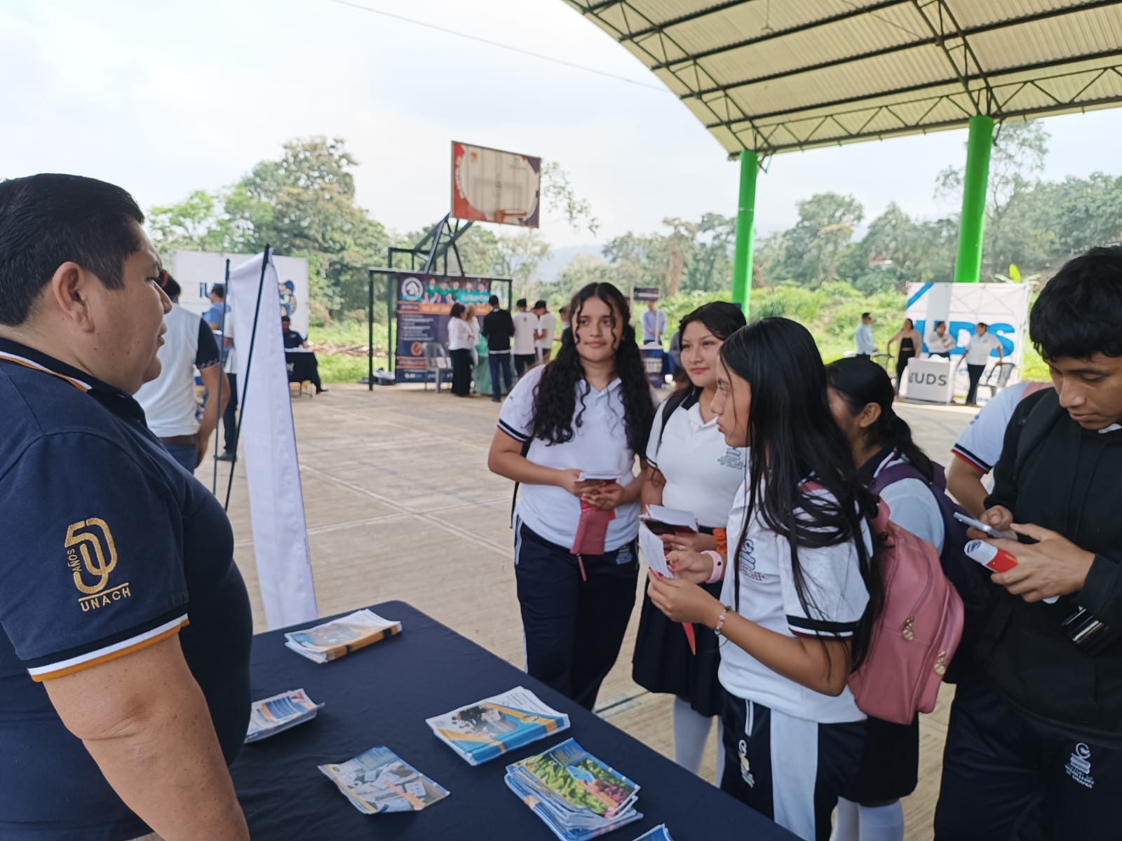 El evento se llevó a cabo en la cancha techada de la institución educativa, donde estudiantes del plantel participaron activamente, mostrando interés en conocer la oferta educativa que ofrece la Unidad Académica.
