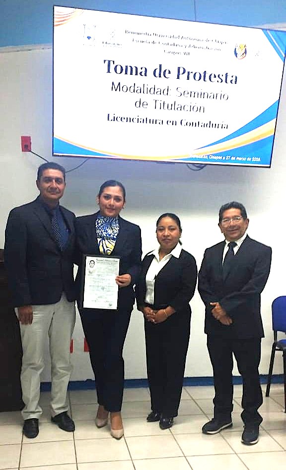 Pichucalco, Chiapas. – En el Salón de Usos Múltiples de la Escuela de Contaduría y Administración Campus VII de la Benemérita Universidad Autónoma de Chiapas, se llevó a cabo el Acto de Evaluación Profesional de la Licenciatura en Contaduría.