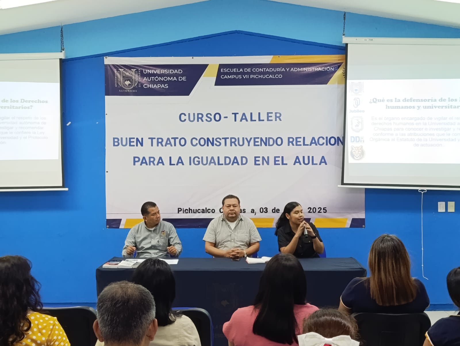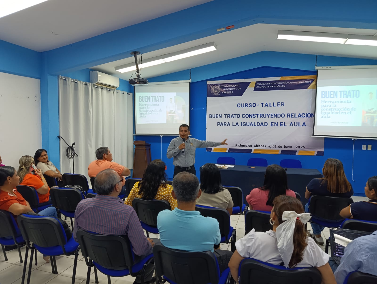 Pichucalco, Chiapas. — Con el propósito de fortalecer la convivencia armónica y el respeto en el entorno educativo, se llevó a cabo el taller titulado “Buen Trato: Construyendo relaciones para la igualdad en el aula”, dirigido al personal docente y administrativo de la Escuela de Contaduría y Administración, Campus VII Pichucalco de la Universidad Autónoma de Chiapas.