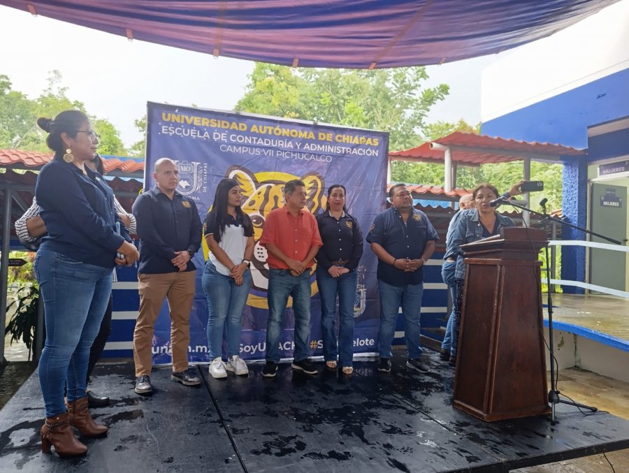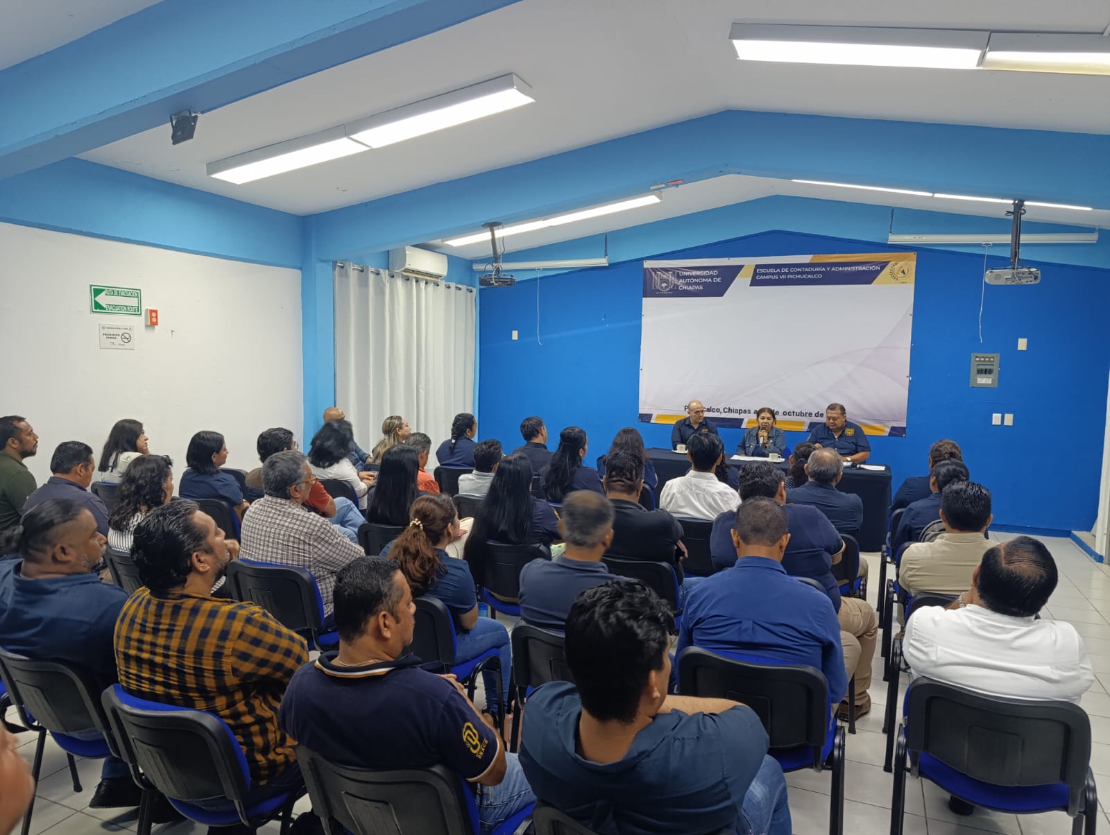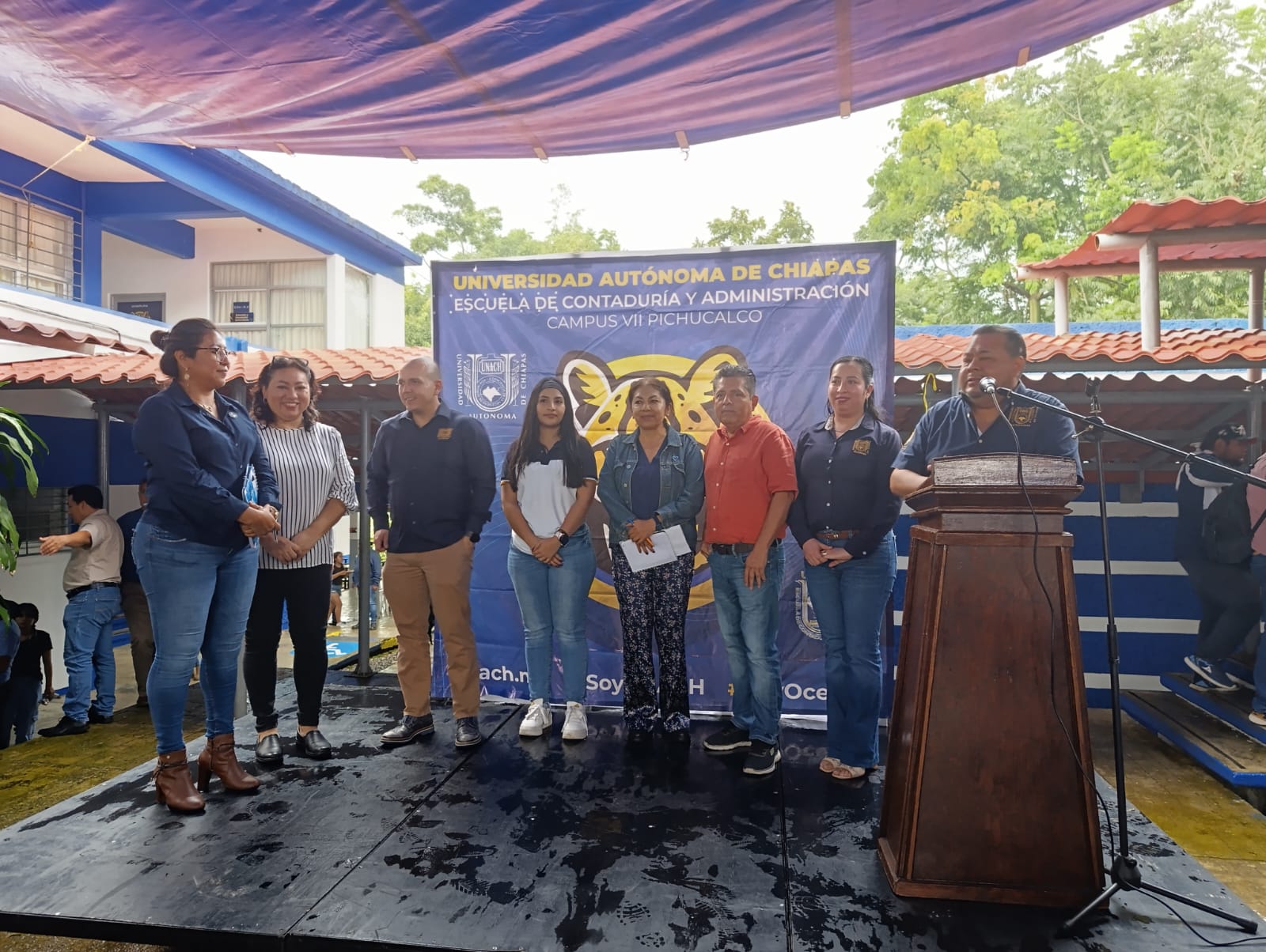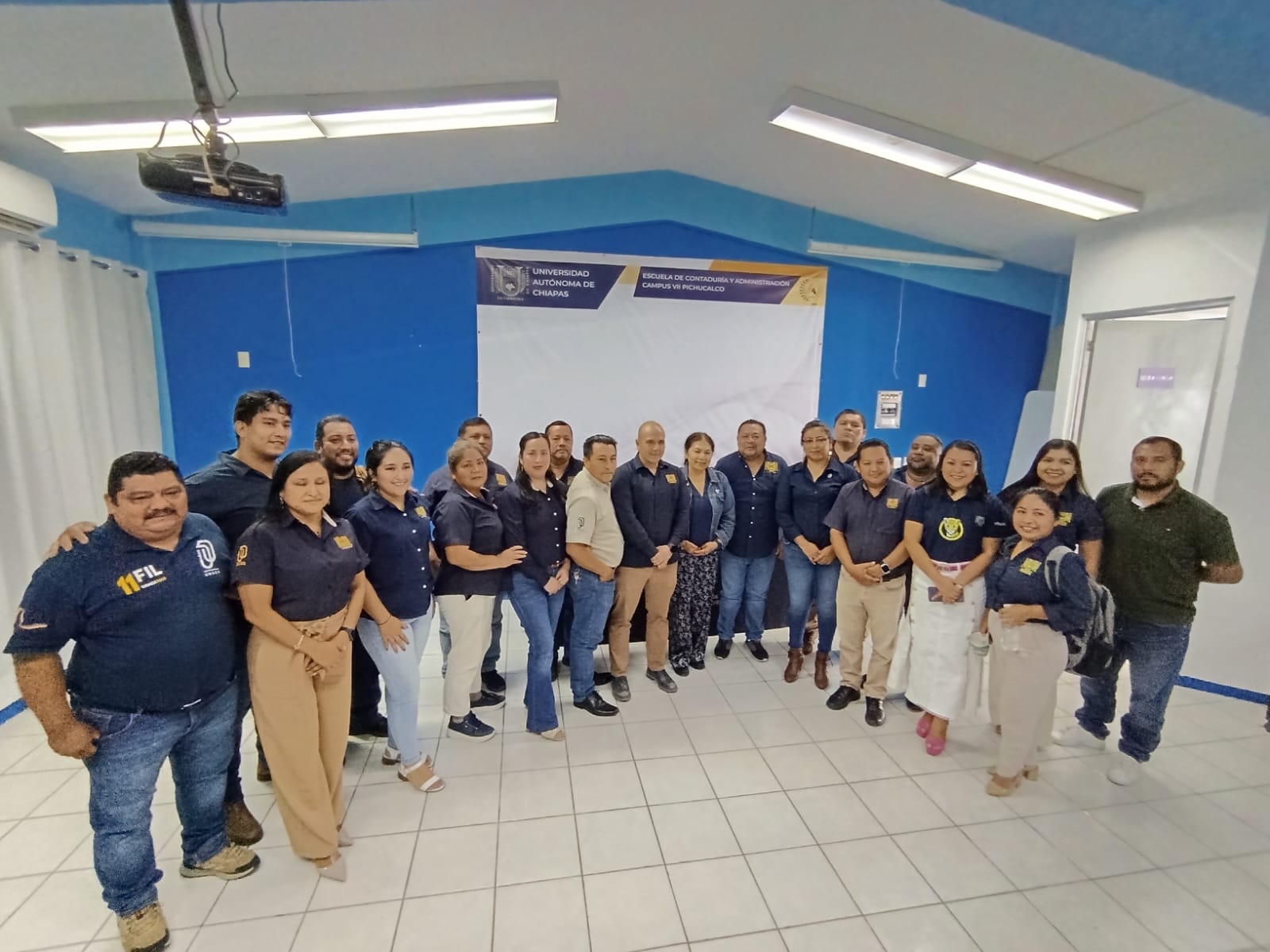 Pichucalco, Chiapas; octubre de 2025. — En un ambiente de cordialidad y compromiso institucional, la comunidad universitaria de la Escuela de Contaduría y Administración, Campus VII Pichucalco, recibió la visita de autoridades de la Benemérita Universidad Autónoma de Chiapas (UNACH), encabezadas por la Dra. María del Carmen Vázquez Velasco, Secretaria General de la Universidad.