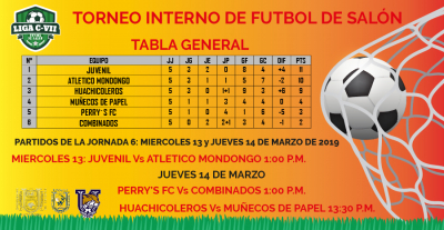 TABLA GENERAL Y SEXTA JORNADA.- TORNEO INTERNO