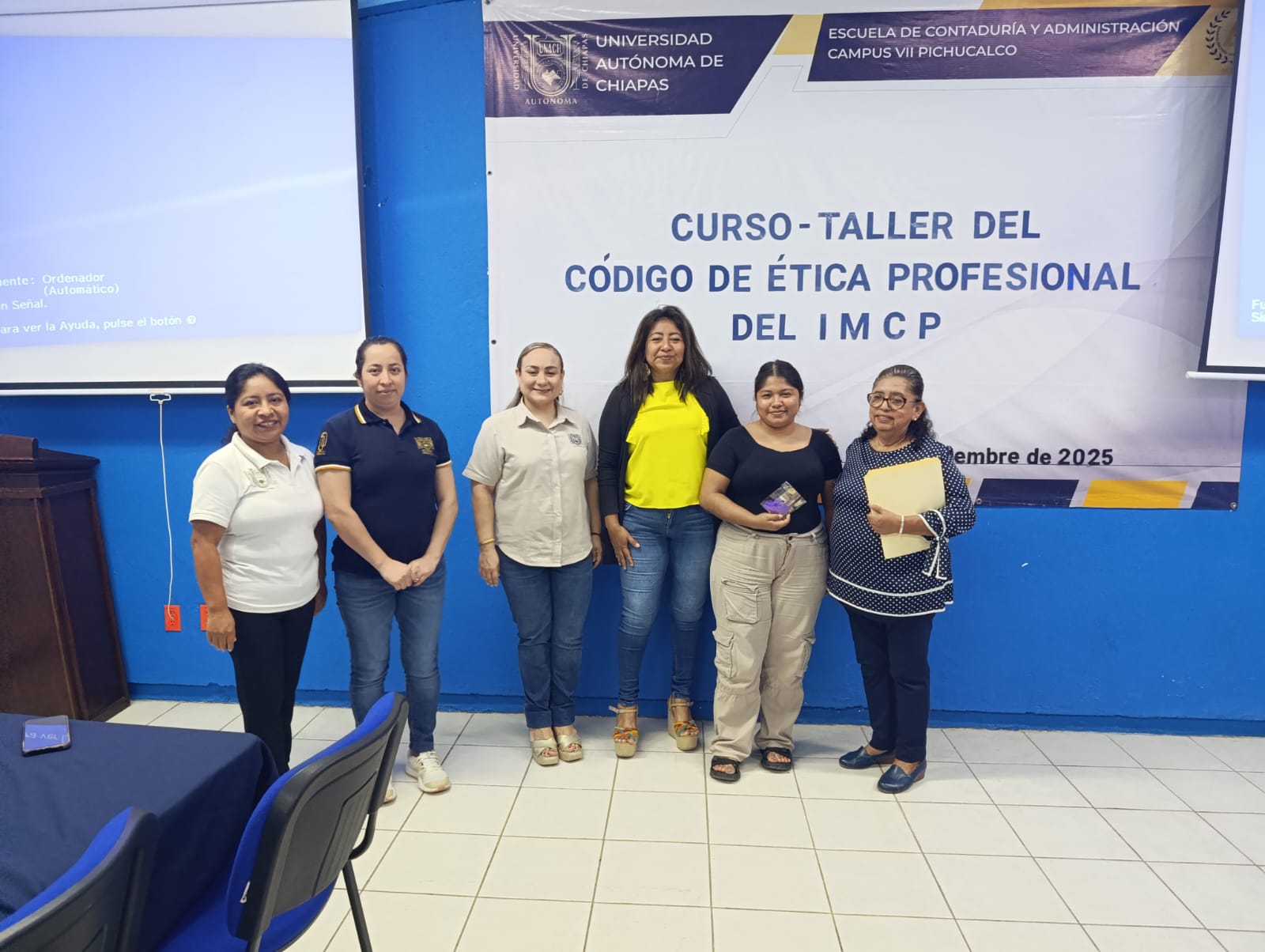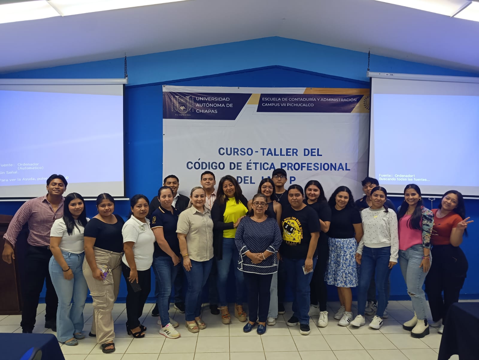 Pichucalco, Chiapas; 19 de noviembre de 2025. — La Escuela de Contaduría y Administración, Campus VII de la Benemérita Universidad Autónoma de Chiapas, realizó la quinta sesión del Curso-Taller del Código de Ética Profesional del IMCP, fortaleciendo la formación ética y profesional de sus estudiantes.