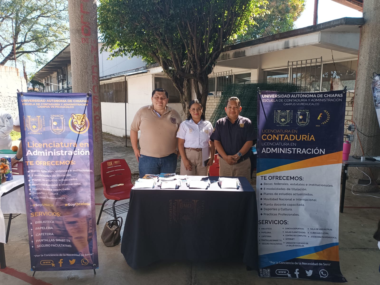 Pichucalco, Chiapas.– En el marco de la Convocatoria Febrero 2026 para el ciclo escolar agosto–diciembre 2026, y por instrucciones del Director de la Escuela de Contaduría y Administración, Campus VII, Mtro. Jorge Alberto Malpica Silva, personal académico y administrativo de esta Unidad Académica participó en la Feria Profesiográfica 2026, en su 12ª edición, realizada en las instalaciones del Plantel No. 09 del COBATAB (Colegio de Bachilleres de Tabasco), en la ciudad de Teapa, Tabasco.