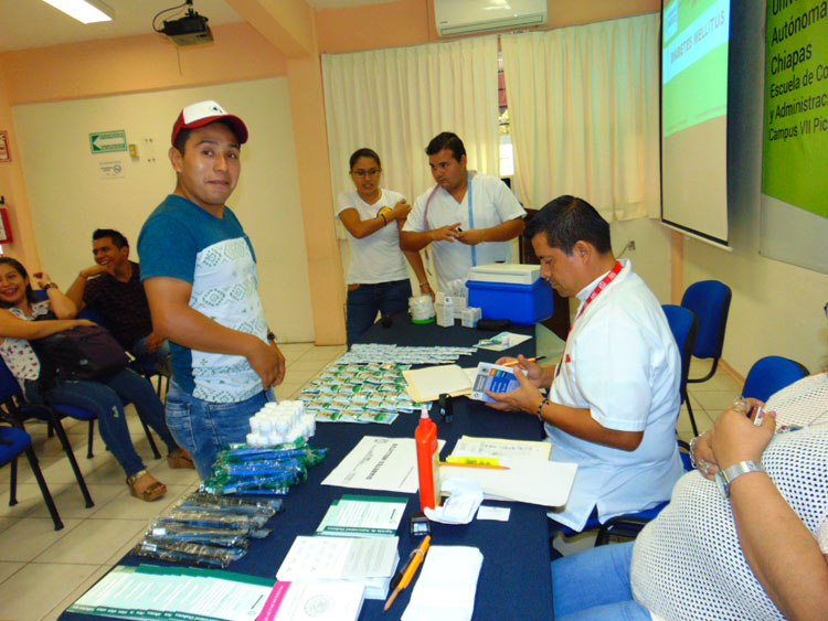 En esta ocasión además de presentar temas de suma importancia como la Diabetes Mellitus, el personal de la Clínica Familiar llevó a cabo campaña de vacunación contra la influenza, la toma de glucosa, somatometría, nutrición y salud bucal, con el apoyo del departamento de seguro facultativo se entregaron carnets a estudiantes que no los tenían, así como renovar aquellos que se habían extraviado o ya estaban vencidos.