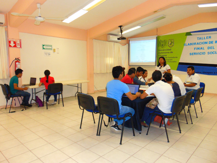 Pichucalco, Chiapas. – El Departamento de Servicio Social de la Escuela de Contaduría y Administración UNACH Campus VII Pichucalco, a Cargo de la L.C.P. María Cristina González Castellanos, imparte Taller de Elaboración de Informe Final del Servicio Social Periodo Enero – Julio 2019.
