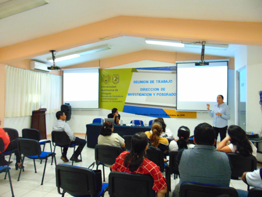 En esta reunión de trabajo que se llevó a cabo, en las instalaciones que ocupa la Sala de Usos Múltiples de esta Unidad Académica, se informó a los asistentes, los requisitos y procedimientos para aspirar a un perfil PRODEP (Programa para el Desarrollo Profesional Docente para el Tipo Superior), además de incentivar a sede a promover y realizar de manera interna la investigación, además se trataron temas con la Formación y Consolidación de Cuerpos Académicos, la formación de líneas de investigación, así como el asesoramiento que brinda esta dirección y el compromiso de la institución para seguir incrementando la productividad ante los organismos correspondientes.
