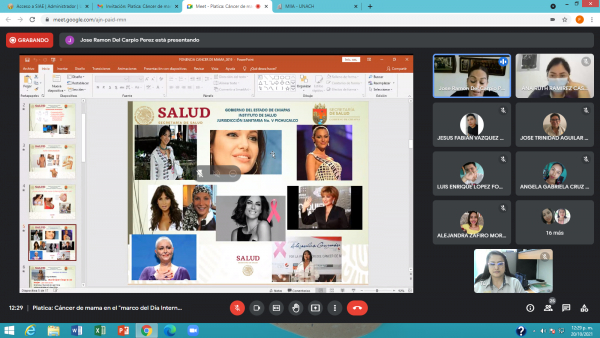 La plática se llevó a cabo de manera virtual y aplicando los protocolos de seguridad establecidos por la Secretaría de Salud y fue impartida por la Dra. Yanet Cruz de la Cruz Coordinadora de la Clinica de la Mujer de Pichucalco. Estuvieron presentes la Directora de la Escuela Mtra. Urania Wade Aguilar, el Coordinador de extensión y Vinculación Universitaria L.C.P. José Ramón del Capio Pérez, la Encargada del Departamento de Género Lic. Faviola Cruz Hernández, docentes, estudiantes y administrativos.