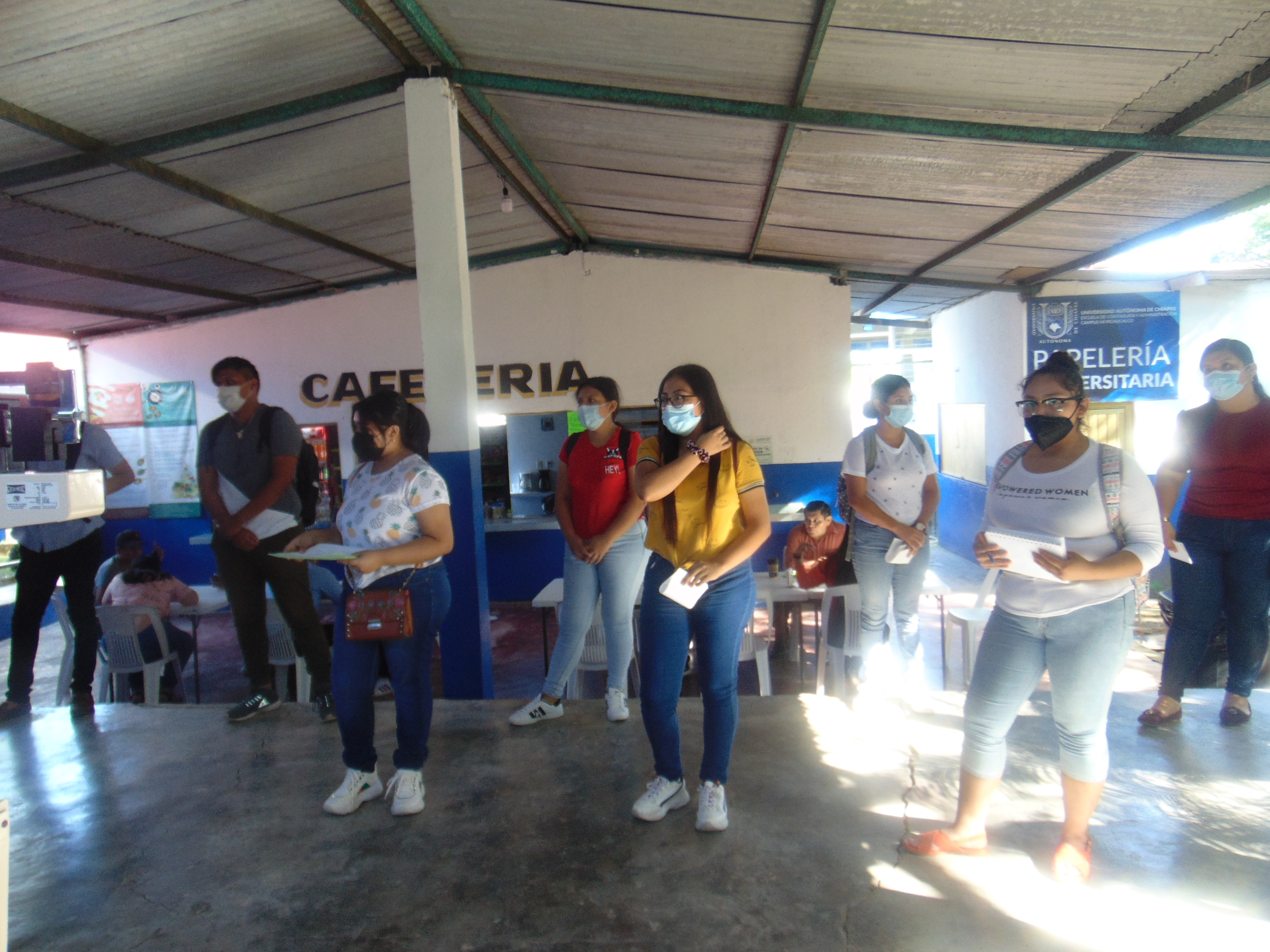Entrega de carnets por la unidad Médica Familiar 043 de Pichucalco a los alumnos de 1° semestre de las carreras de Contaduría y Administración del Campus VII.