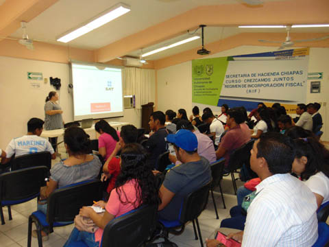 Pichucalco, Chiapas. – La Secretaría de Hacienda de Chiapas la Delegación Pichucalco en Coordinación con la Secretaría Académica de la Escuela de Contaduría y Administración UNACH Campus VII Pichucalco, imparten el curso denominado “Crezcamos Juntos, Régimen de Incorporación Fiscal (RIF)”.