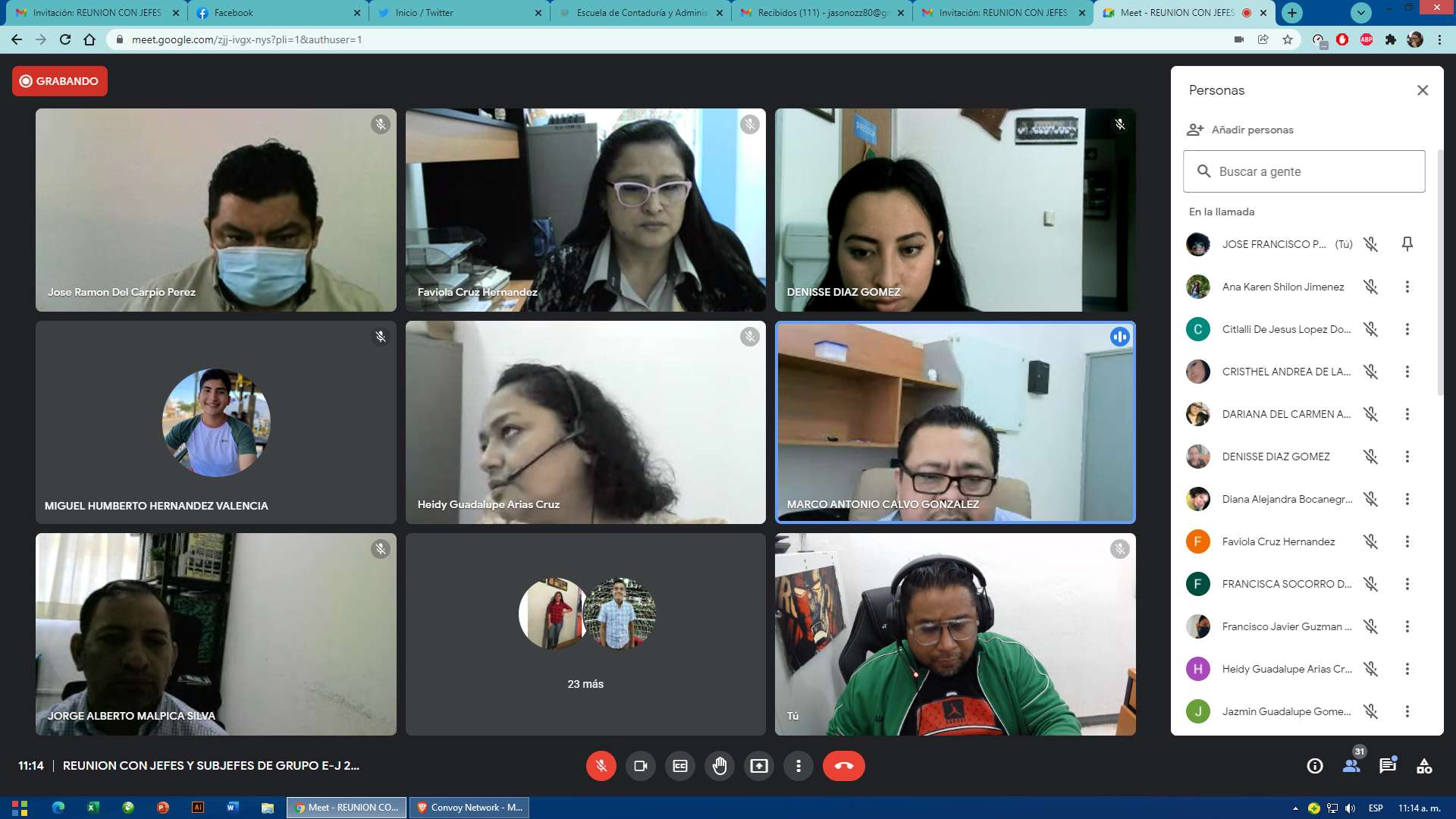 Pichucalco, Chiapas. - La Dirección de la escuela encabezada por el Dr. Marco Antonio Calvo González y en coordinación con Secretaría Académica y los diferentes departamentos de esta escuela, llevan a cabo reunión de trabajo con jefes y subjefes de grupo, reunión que se llevó a cabo de forma virtual.