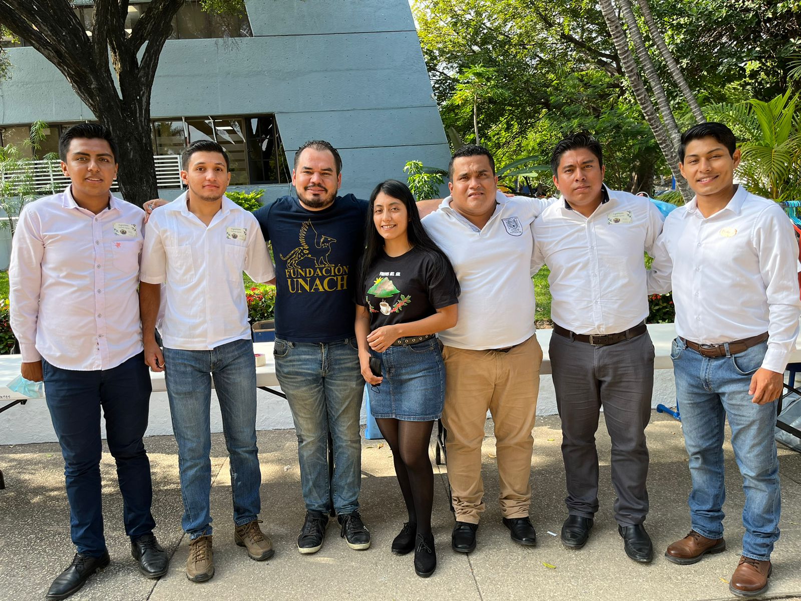 Esta representación está integrada por la Alumna Cesia Belén Moreno Martínez del 6° Semestre Grupo “A” de la Licenciatura en Contaduría con su Proyecto de negocio CAFE FRUTOS DEL SOL, los alumnos Josué Gómez Zárate, Orlando Malpica Silva, Marco Eleazar Gil Baeza del 7° Semestre Grupo “C” de la Licenciatura en Administración con su proyecto de negocio ORGANICOM Fertilizante Orgánico, el alumno Wilberth Ovando Hernández del 5° Semestre Grupo “B” de la Licenciatura en Contaduría con su proyecto de negocio PANiNTE panes integrales y Cristhel Andrea de la Cruz Fócil del 9° Semestre Grupo “C” con su proyecto SALSAS KIMBA y encabezados por el Mtro. Víctor Daniel González Mollinedo Coordinador del Departamento Enlace del Centro Universidad Empresa CEUNE-UNACH CVII, la cual se ah encargado de trabajar para que cada vez mas existan emprendedores en esta escuela.