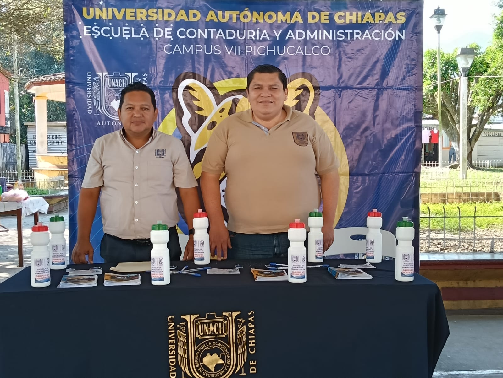 Chapultenango, Chiapas. – En el marco de los trabajos de promoción y difusión de la Convocatoria Febrero 2025, la Escuela de Contaduría y Administración Campus VII Pichucalco de la UNACH participó en la Feria Profesiográfica del Colegio de Bachilleres de Chiapas (COBACH) Plantel 53, realizada en el domo de la institución.