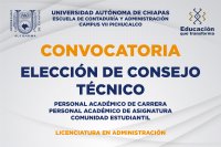 Al personal Académico de Carrera, Asignatura y a la Comunidad estudiantil de la Escuela de Contaduría y Administración, Campus VII a participar en el proceso de elección de las y los representantes de la Licenciaturas en Contaduría y Administración ante el Consejo Técnico, el cual se llevará a cabo el día 21 de marzo de 2025, de 8:00 horas a 11:00 horas, en el espacio que se ubica en la parte posterior de la cafetería de las instalaciones de esta Dependencia Universitaria, de conformidad con las siguientes bases.