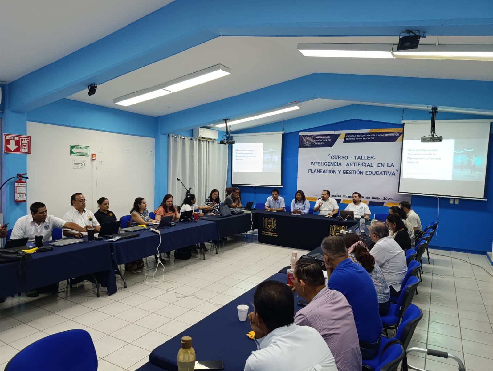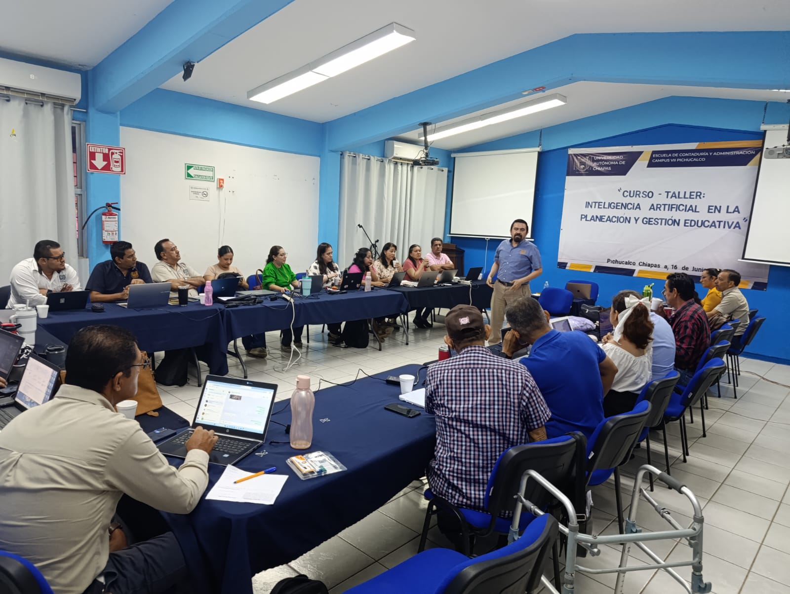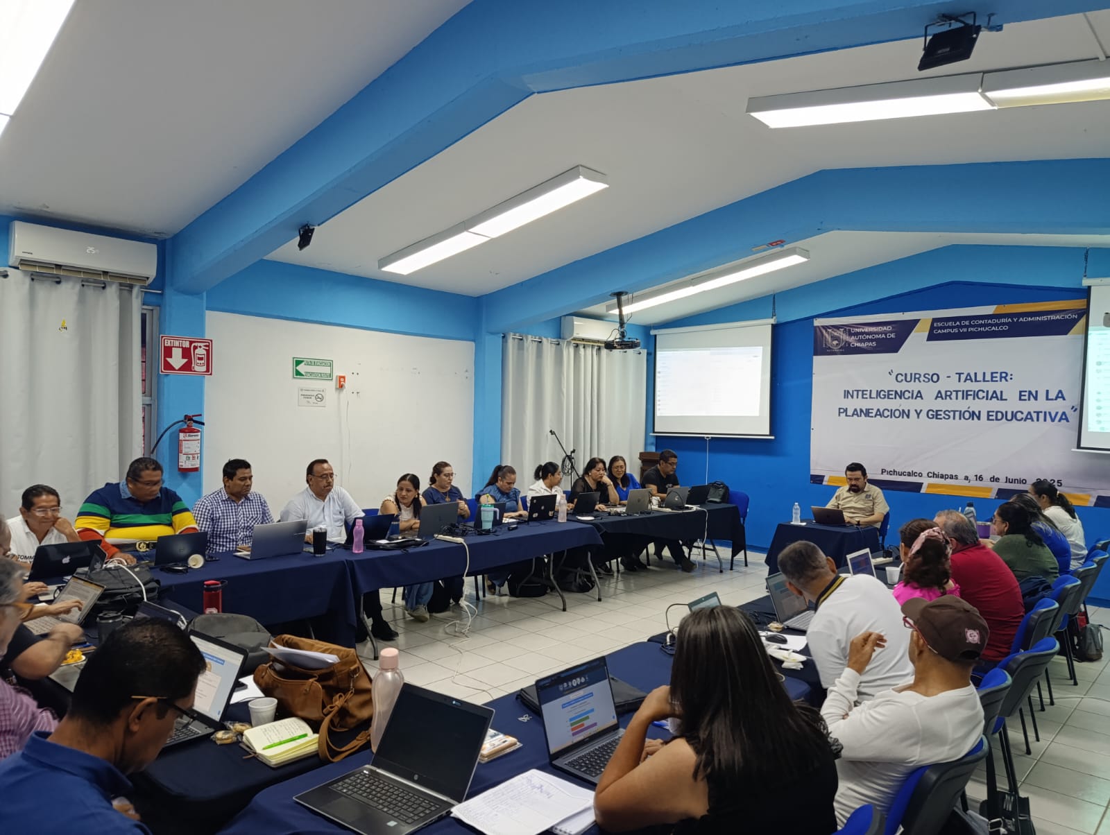 La Escuela de Contaduría y Administración Campus VII Pichucalco de la Universidad Autónoma de Chiapas fue sede del Curso-Taller “Inteligencia Artificial en la Planeación y Gestión Educativa”, que se desarrolló del 16 al 19 de junio en modalidad presencial, con una duración total de 30 horas, como parte del Programa de Actualización y Formación Docente, Trayecto Formativo 2025‑2026.