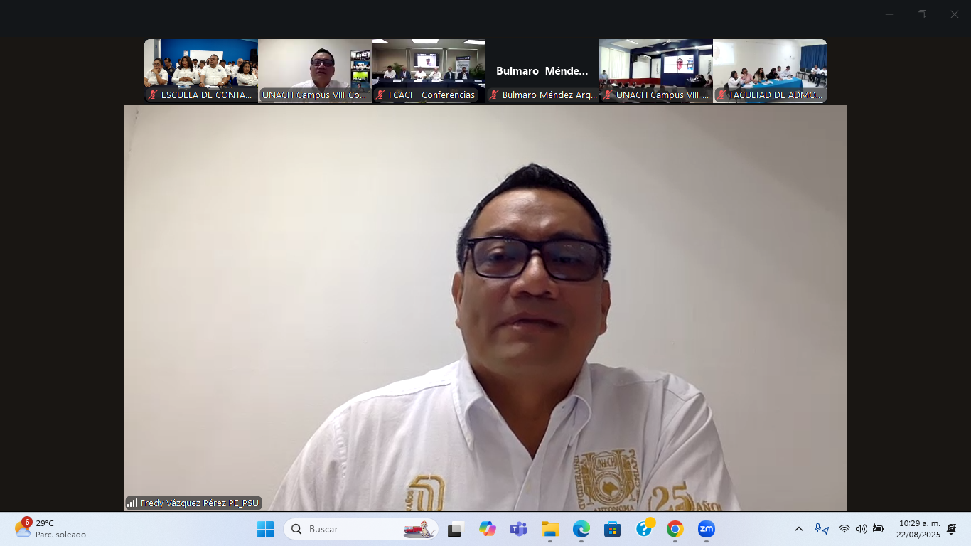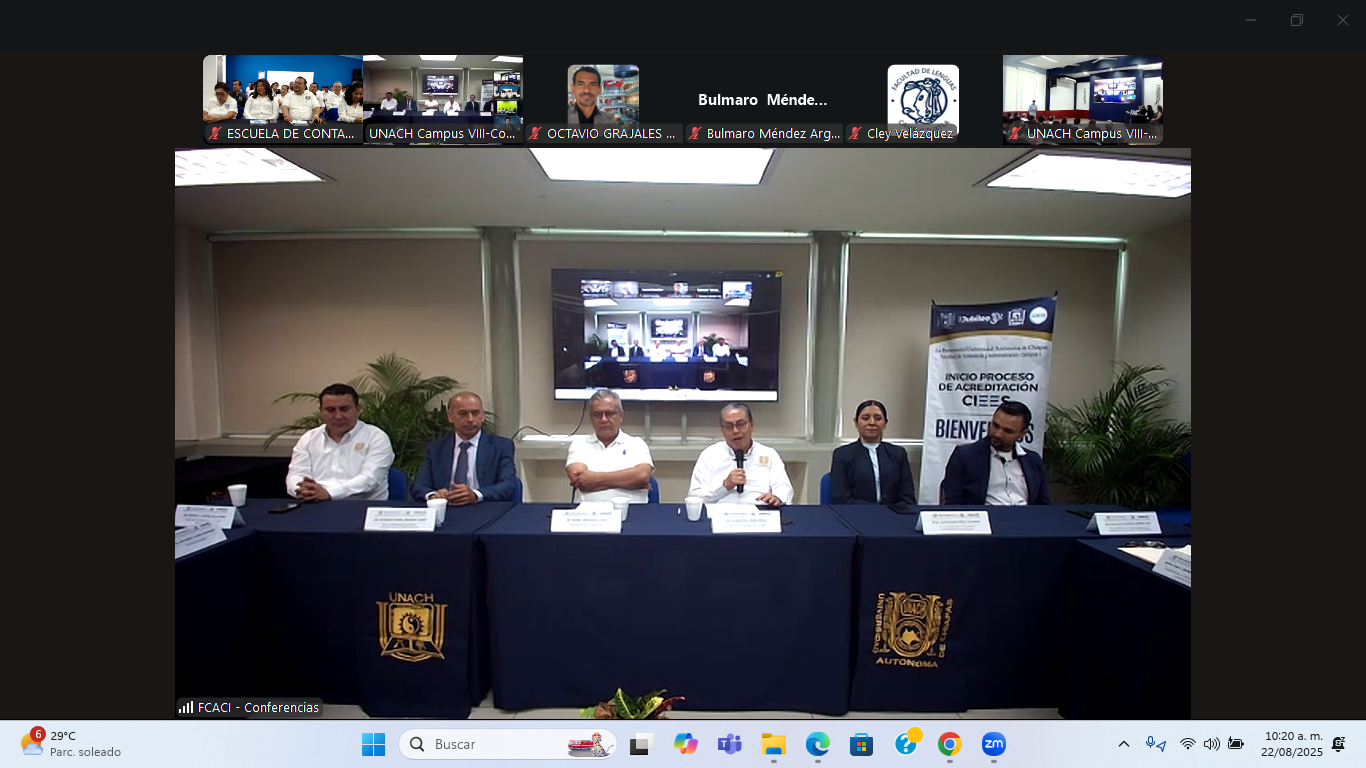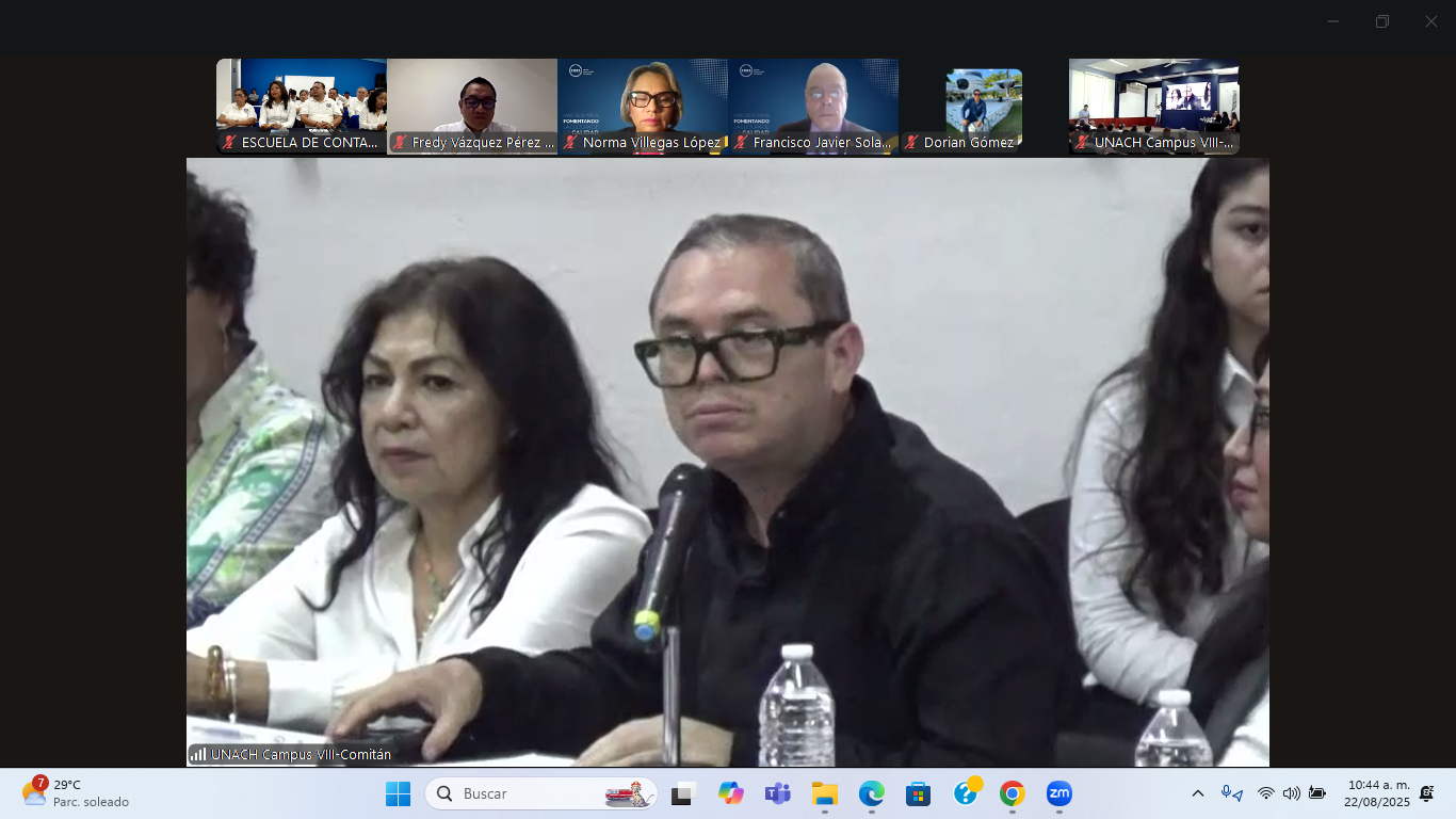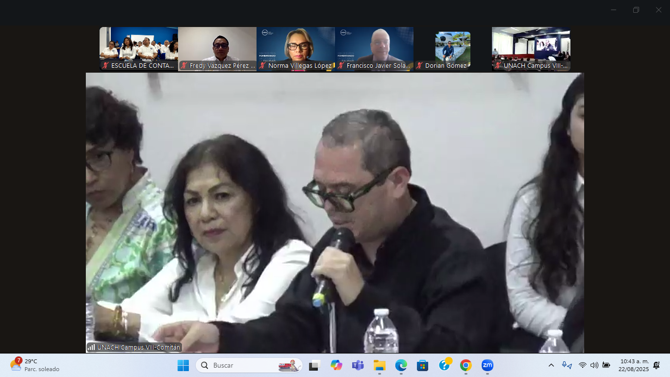La Escuela de Contaduría y Administración, Campus VII Pichucalco, estuvo presente de forma remota, destacando la presencia del Dr. Marco Antonio Calvo González, director de la Escuela; la Mtra. María Cristina González Castellanos, secretaria académica; la Dra. Bellanira Arias Cruz, encargada del Programa Educativo de Contaduría; y la Dra. María Mercedes Díaz García, responsable de Acreditación.