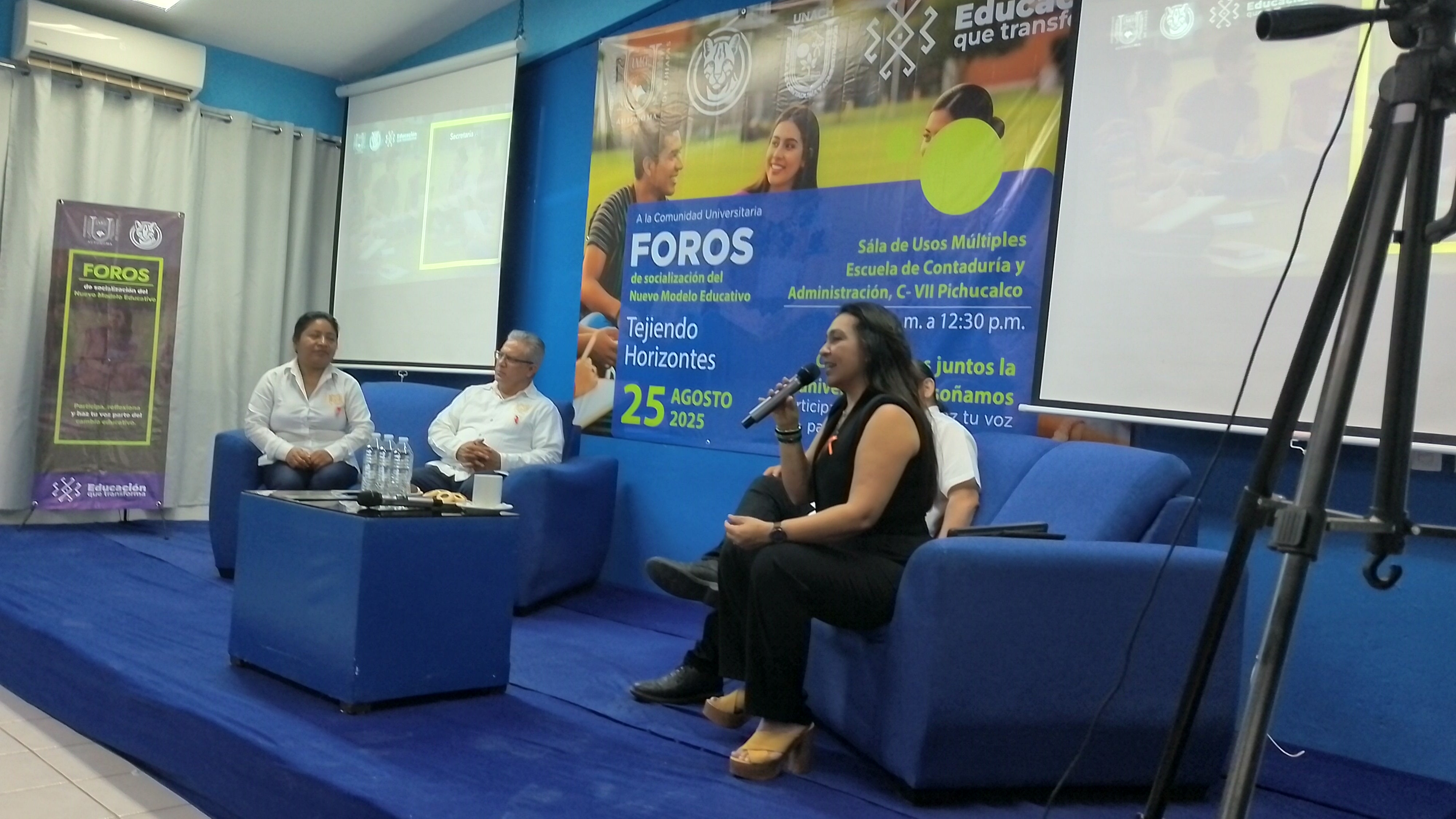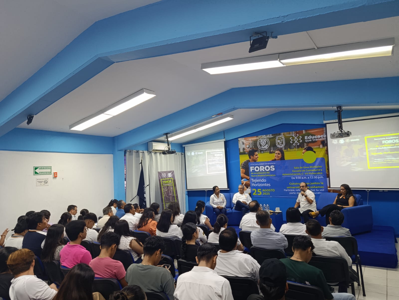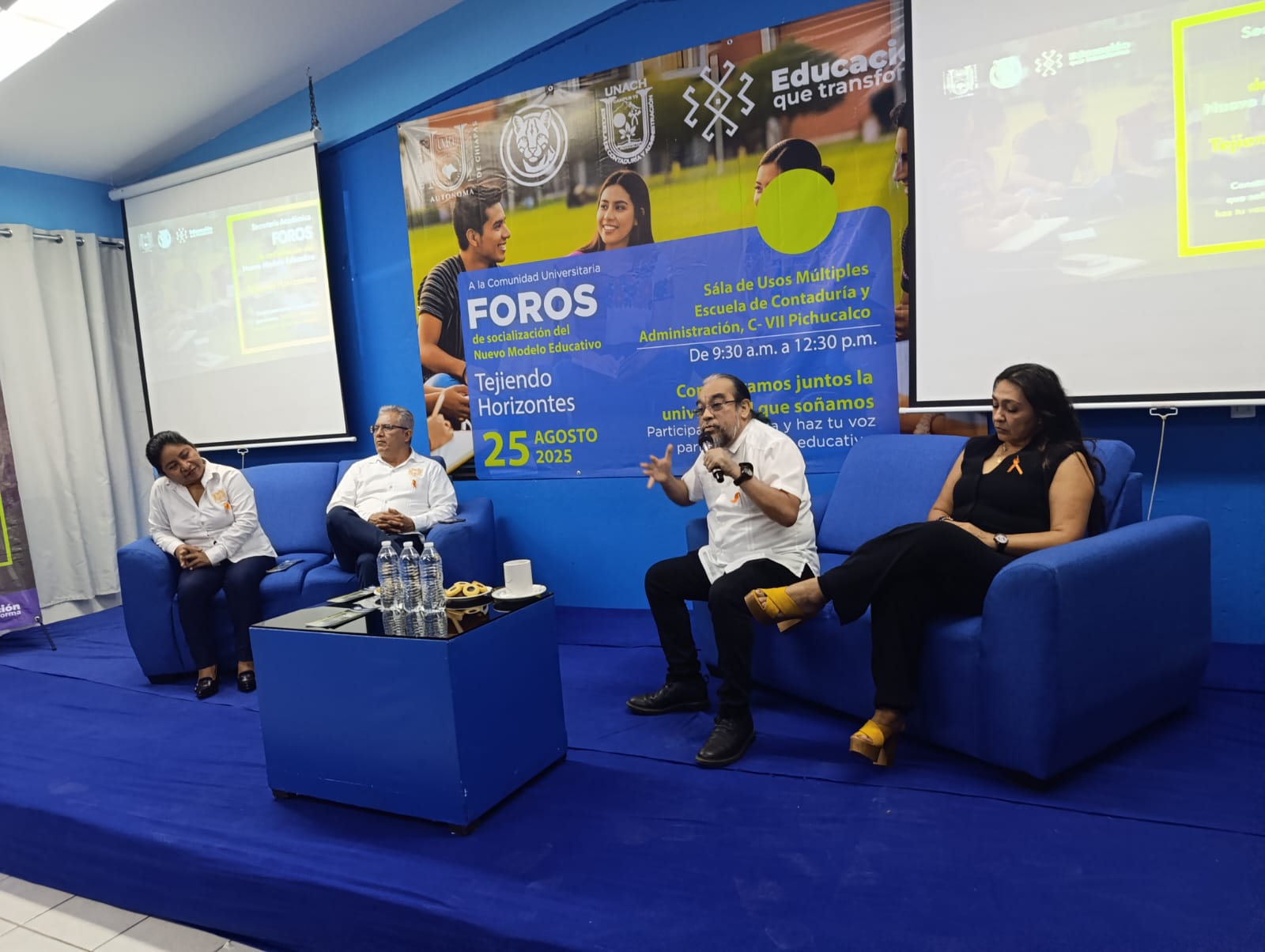 Pichucalco, Chiapas, 25 de agosto de 2025.- La Escuela de Contaduría y Administración, Campus VII de la Universidad Autónoma de Chiapas (UNACH), fue sede de los Foros de Socialización del Nuevo Modelo Educativo, un espacio de reflexión y diálogo académico orientado a construir una universidad más incluyente, innovadora y con pertinencia social.