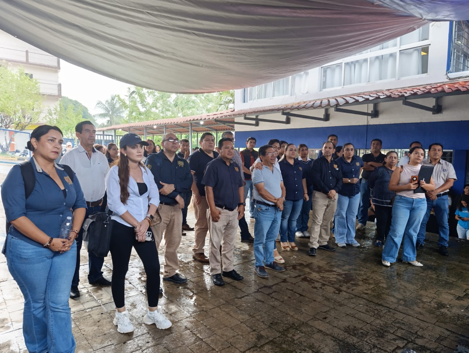 Durante el acto protocolario, realizado en la Plaza Cívica de la escuela, estuvieron presentes la Consejera Universitaria Magda Sofia Albores López, Mtra. María Cristina González Castellanos, Secretaria Académica; la Lic. Denisse Díaz Gómez, Secretaria Administrativa, y el Dr. Marco Antonio Calvo González, Director de la Escuela, quienes dieron la bienvenida a la comitiva universitaria conformada además por el Mtro. Romeo Alexander Salazar Maldonado, Director de Personal y Prestaciones Sociales, y el Mtro. Javier Guízar Ovando, representante del Programa de Alfabetización UNACH, junto con personal de ambas áreas.