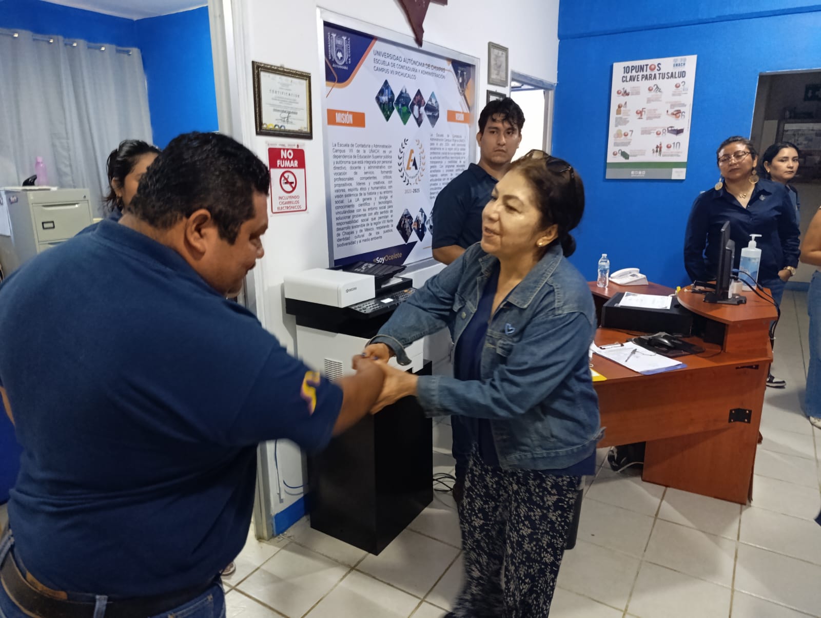Pichucalco, Chiapas; octubre de 2025. — En un ambiente de cordialidad y compromiso institucional, la comunidad universitaria de la Escuela de Contaduría y Administración, Campus VII Pichucalco, recibió la visita de autoridades de la Benemérita Universidad Autónoma de Chiapas (UNACH), encabezadas por la Dra. María del Carmen Vázquez Velasco, Secretaria General de la Universidad.