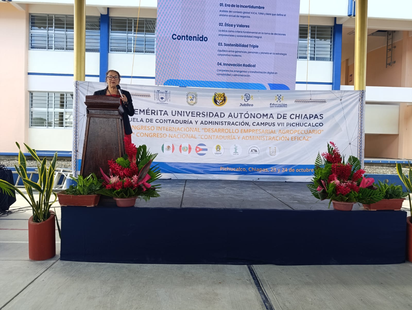 Pichucalco, Chiapas; 24 de octubre de 2025. — Con un balance positivo y una destacada participación de estudiantes, docentes, investigadores y ponentes nacionales e internacionales, concluyó el Segundo Congreso Internacional de Desarrollo Empresarial Agropecuario y el Cuarto Congreso Nacional de Contaduría y Administración Eficaz, el cual se llevó a cabo en las el Domo de la Facultad de Medicina Veterinaria y Zootecnia, Campus II Extensión Pichucalco.